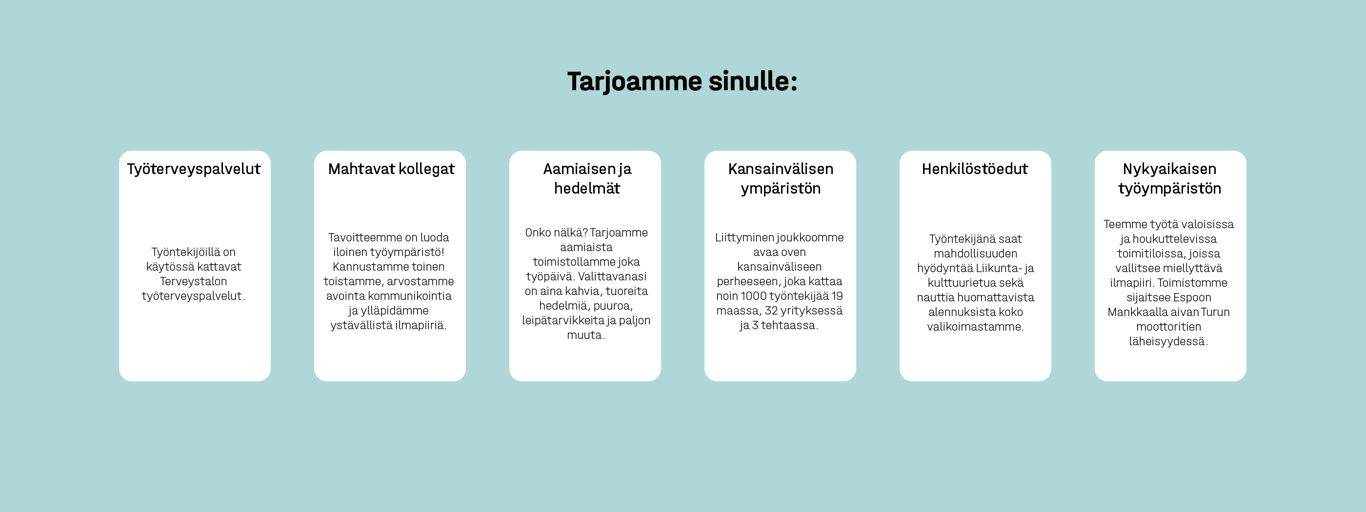 Oletko valmis uusiin haasteisiin? Katso avoimet paikkamme niin näet, millaisia osaajia haemme.