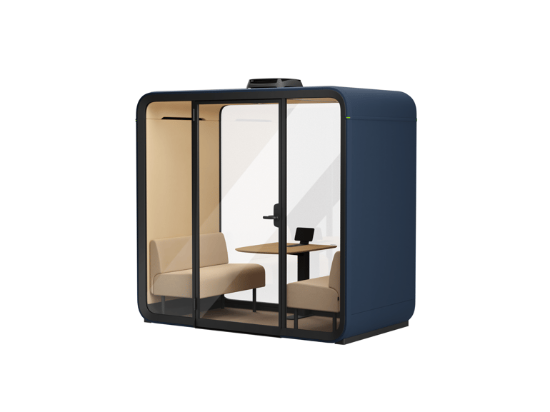 Framery Four™ on äänieristetty neuvottelutila, joka on suunniteltu enintään neljälle hengelle ja sopii modernien tiimien sekä hybridityön tarpeisiin. Tämä monikäyttöinen tila tukee sekä kasvokkain että virtuaalisesti tapahtuvia kokouksia toimistoympäristössä.
