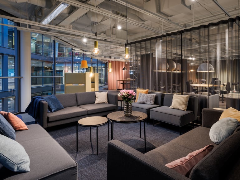 – Lounge-tilat ovat nyt suosittuja. Ne venyvät sekä työskentelyyn että yhdessä olemiseen. Myös kokoustiloja voidaan käyttää vaikkapa ryhmätöihin, kun yhden ison kokouspöydän sijaan tilassa on pienempiä kokoontaitettavia pöytiä, Siikala kuvailee.