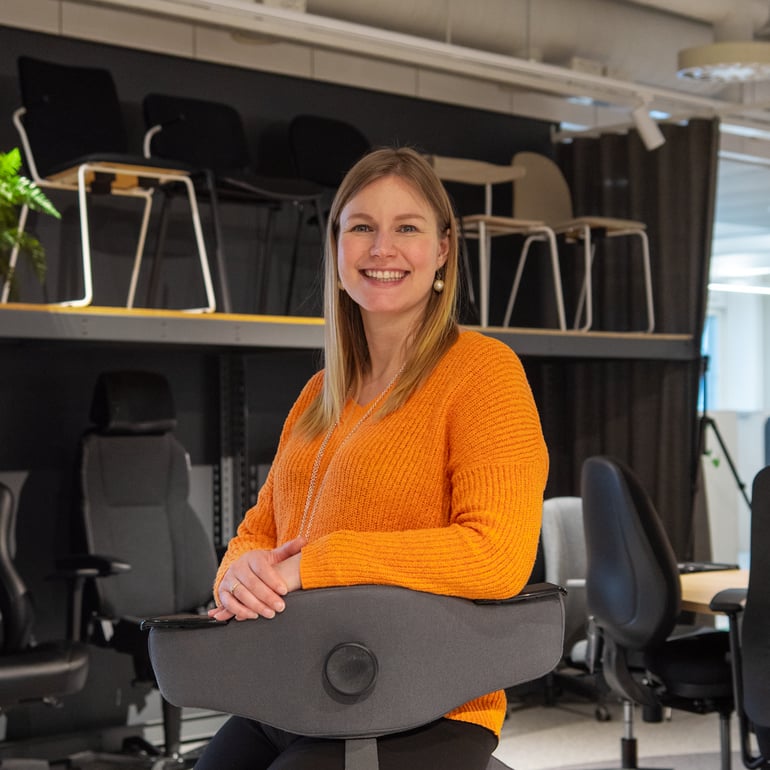 Kuvat: Veera vieraili AJ Tuotteiden showroomissa tutustumassa työympäristöjen kalusteratkaisuihin.