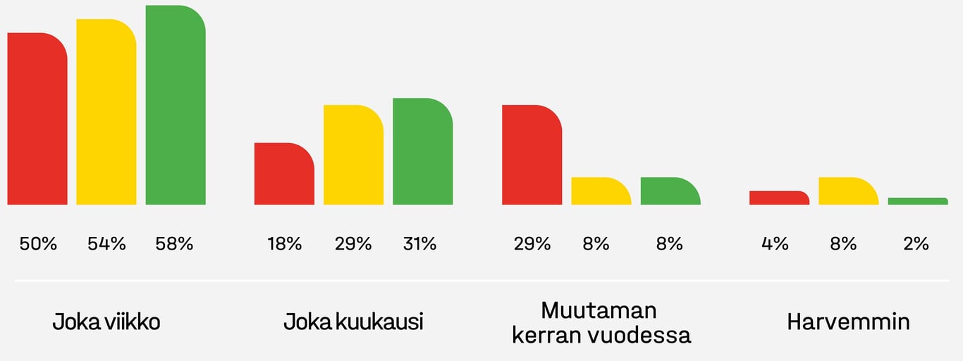 Vaikka puolet vastaajista puhuvat fyysisestä työympäristöstä viikottain työpaikallaan, vain kolmasosa on käynyt muodollisen koulutuksen aiheesta. Tämä tarkoittaa sitä, että on olemassa mielenkiintoa ja halua muuttaa ja kehittää työympäristöä, mutta tarvittaisiin lisää tietämystä aiheesta käytännön toteutusta varten.