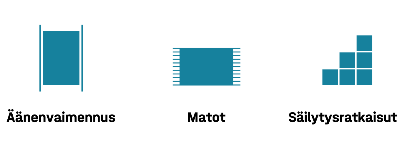 Suurimmat kehitysalueet äänenvaimennus, matot ja säilytysratkaisut