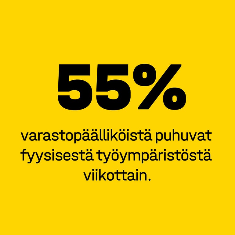 Yli 60 % varastopäälliköistä Suomessa uskoo, että fyysinen työympäristö kehittyy tulevaisuudessa. Koneiden ja laitteiden turvallisuus, työergonomia ja nostot koetaan tärkeimmiksi kehityskohteiksi työpaikalla.