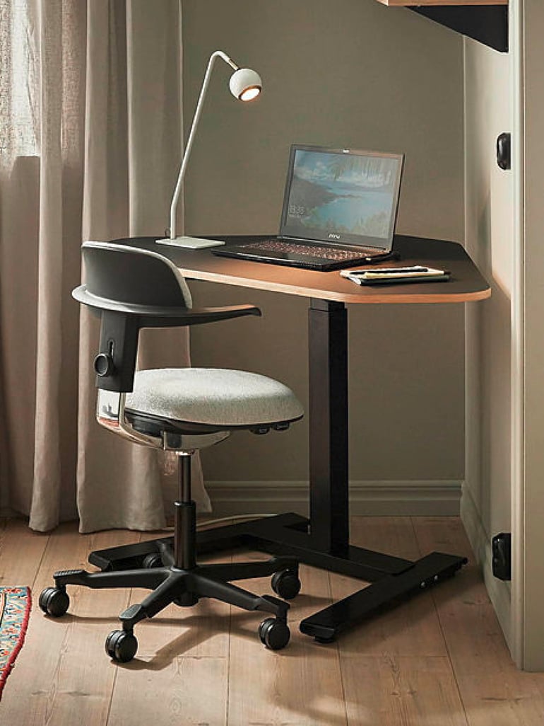 Jos tilaa on rajoitetusti kotona, korkeussäädettävä jakkara voi olla toimiva ratkaisu. Se säästää tilaa, ja sen avulla voi vaihdella työskentelyasentoa. Näin vähennetään selkä- ja niskavaivojen riskiä.