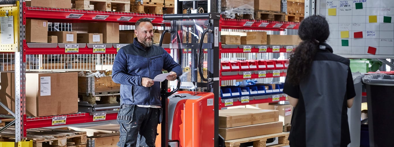 Kun tahti on kova ja työvaiheita on käynnissä samanaikaisesti, jokaisen askeleen on toimittava. Oikeilla varusteilla ja harkitulla kalustuksella työvirta sujuu paremmin, tapaturmien riski pienenee ja työntekijöillä on paremmat edellytykset tehdä työnsä hyvin. Tutustu laajaan valikoimaamme tuotteita, jotka auttavat tehostamaan varaston – säilytyksestä ja keräilystä aina turvallisuuteen ja kuljetukseen.